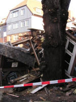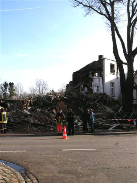Der Tag danach: Vom Voßhaus ist nur noch ein Schutthaufen übrig...